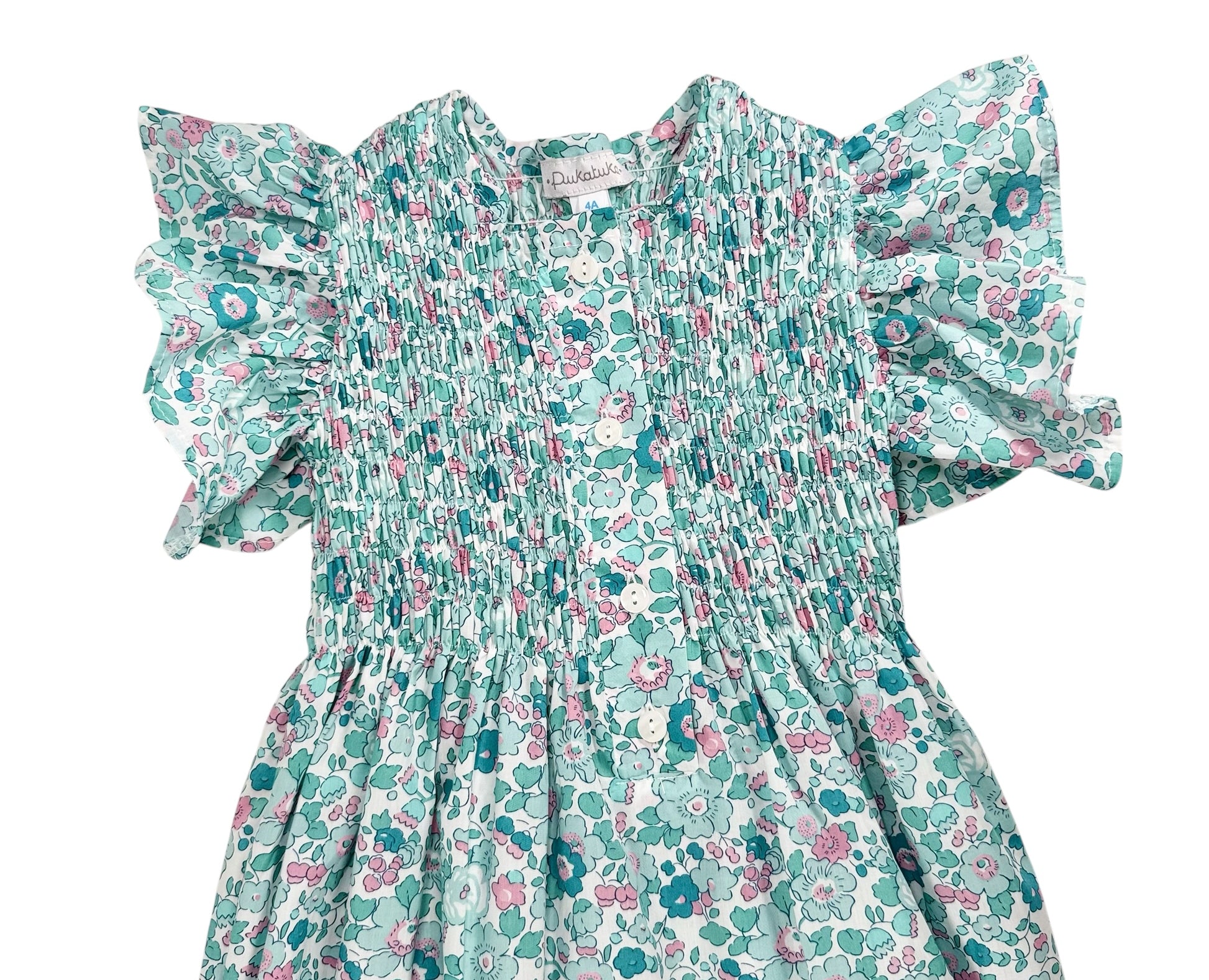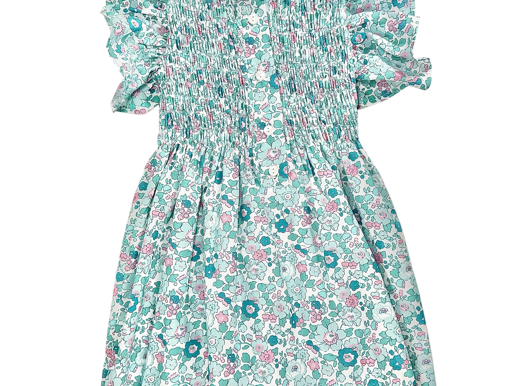 Designed with delicate smock detail on top and ruffles sleeves, this lightweight and breathable dress is perfect for warm days and playful moments.