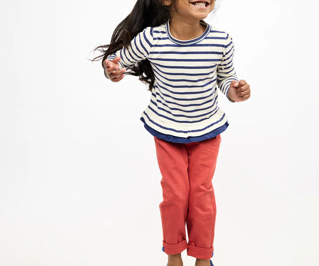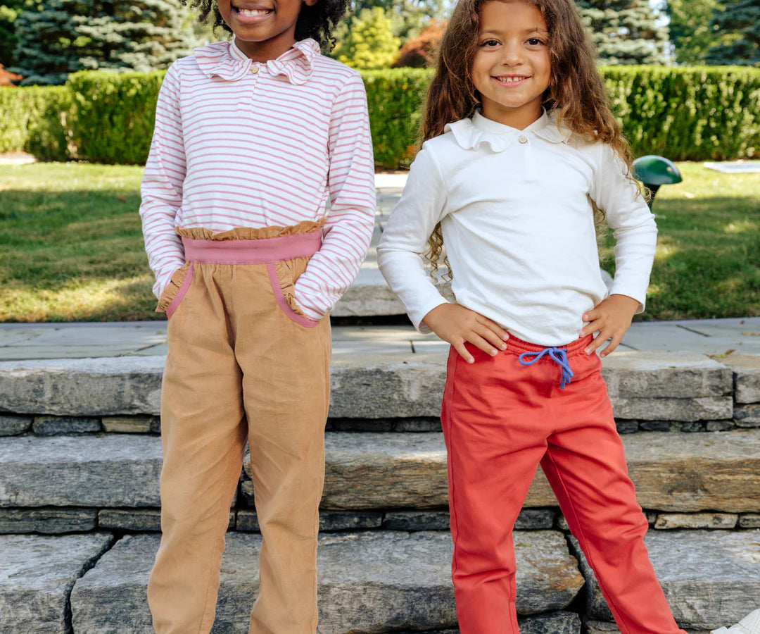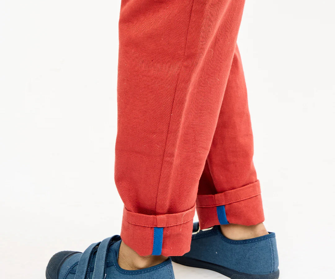 Pant with secret contrast binding at the bottom to make it cuffable and Growable™. The contrast waist drawcord survives growth spurts and makes getting dressed easier than ever.