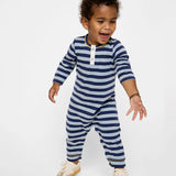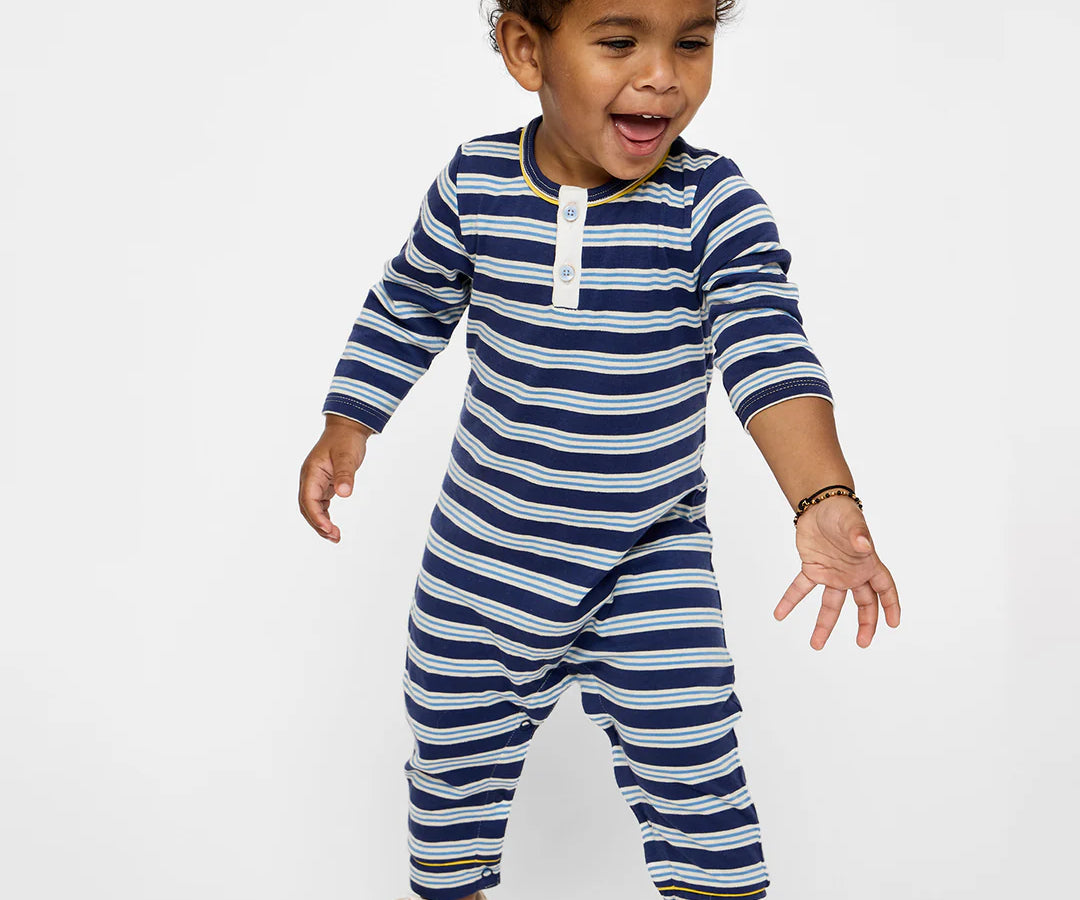 Campbell Romper - Navy Twin Stripe