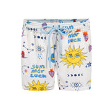 Featuring an elastic waistband, adjustable drawstring, internal mesh lining, side pockets, and a contrasting back pocket with a drawstring. Made from recycled polyester fabric with UV protection, it dries quickly and provides UPF 50+ sun protection. Made in Colombia