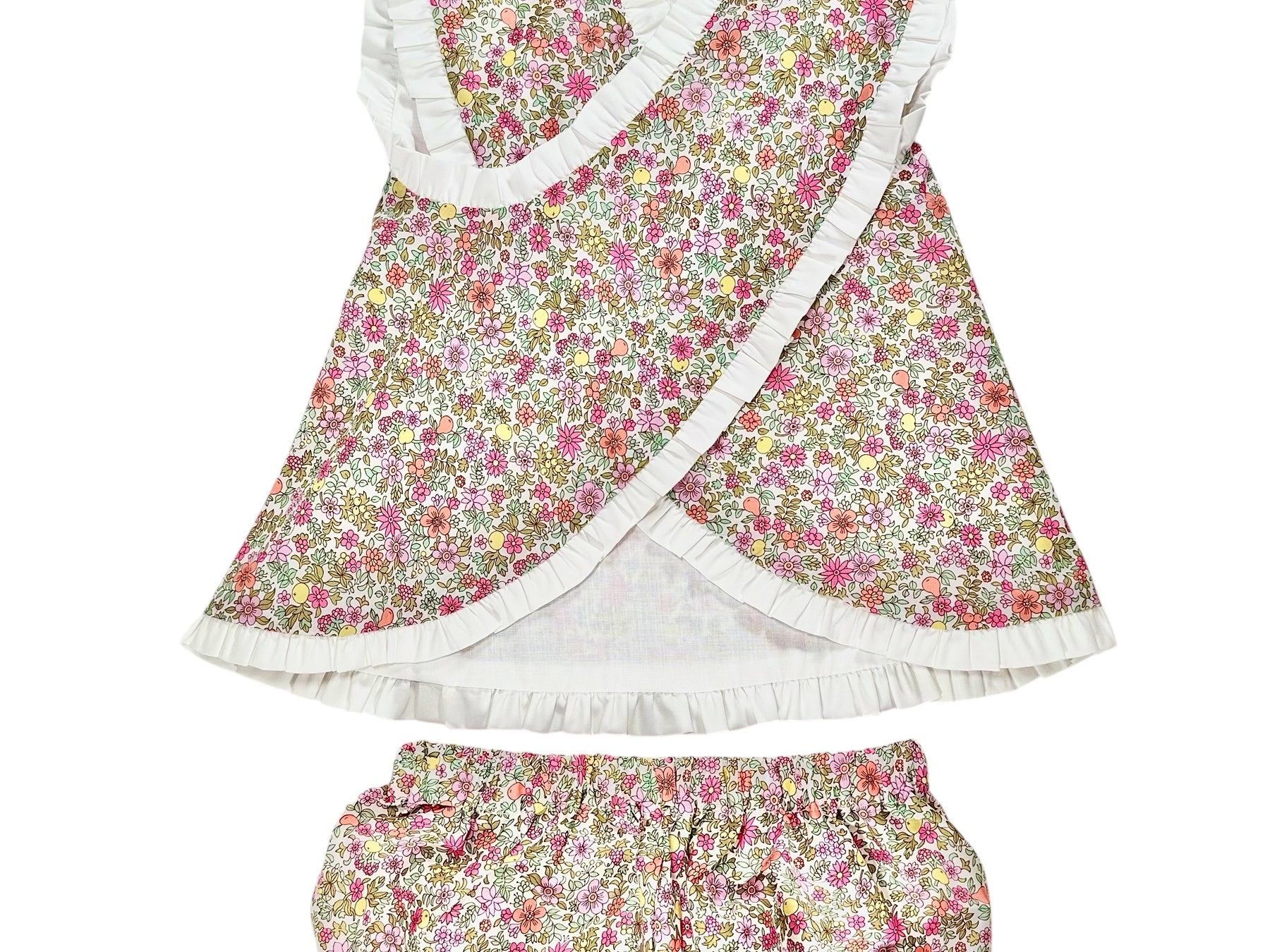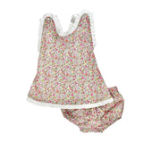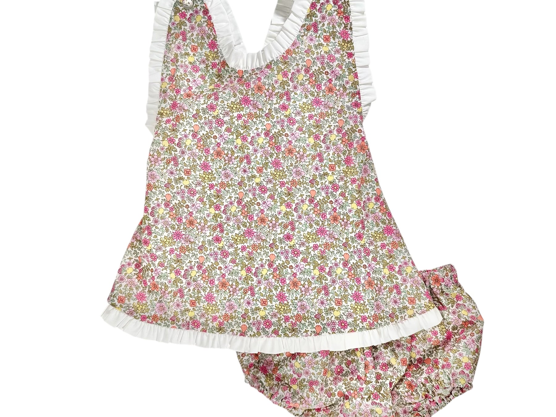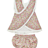 Floral Set with ruffle trim and matching bloomer, it's lightweight and breathable.