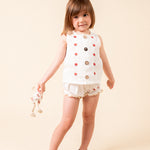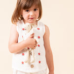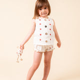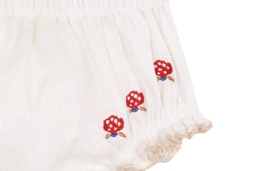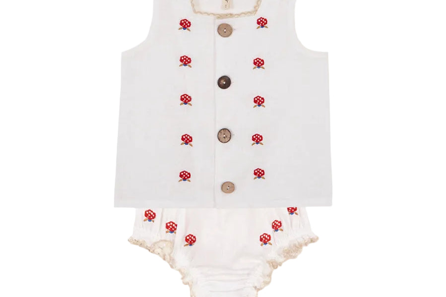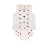 Linen white top with embroidered red flowers and matching bloomers.