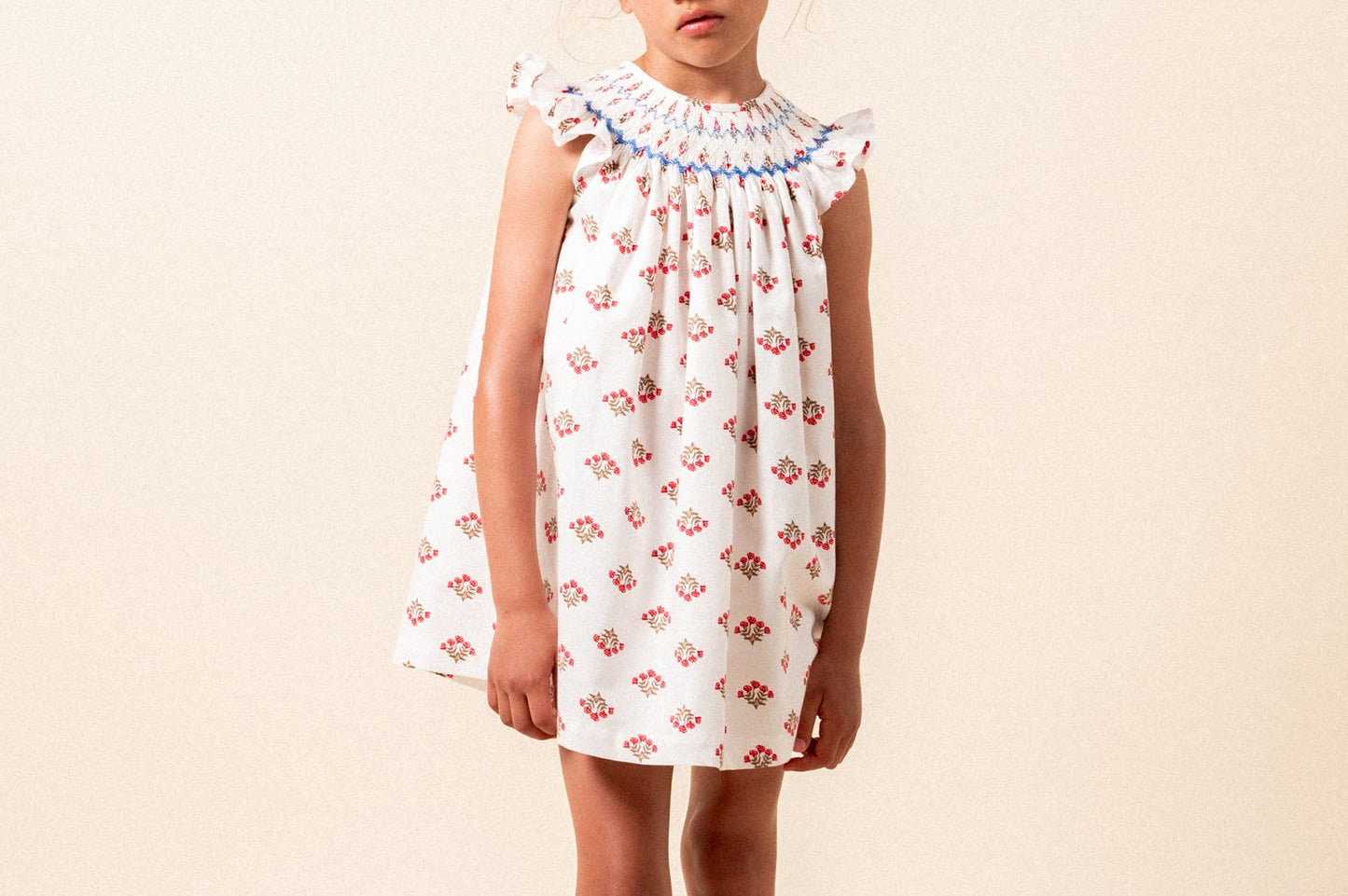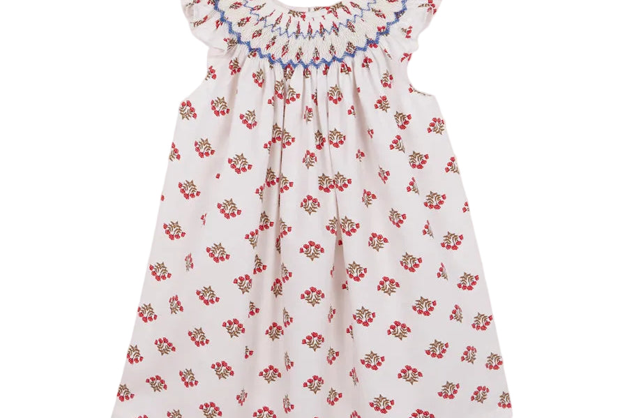 White and red smocked dress