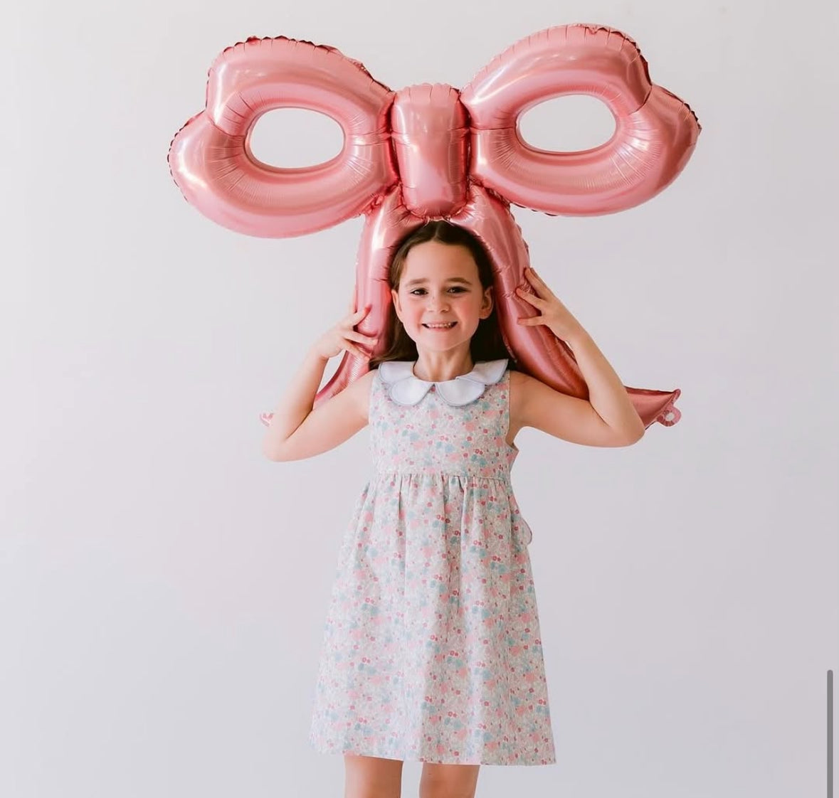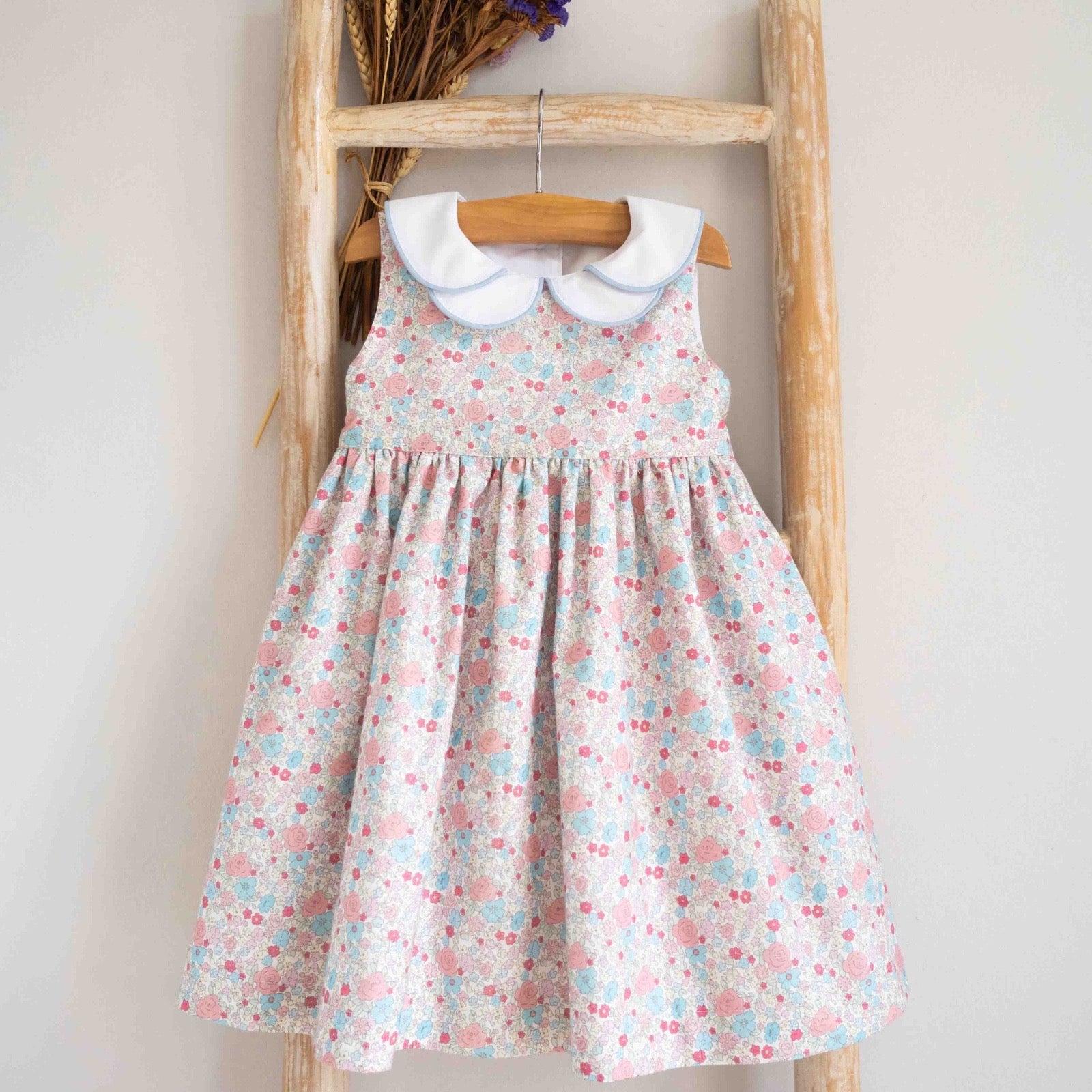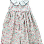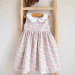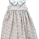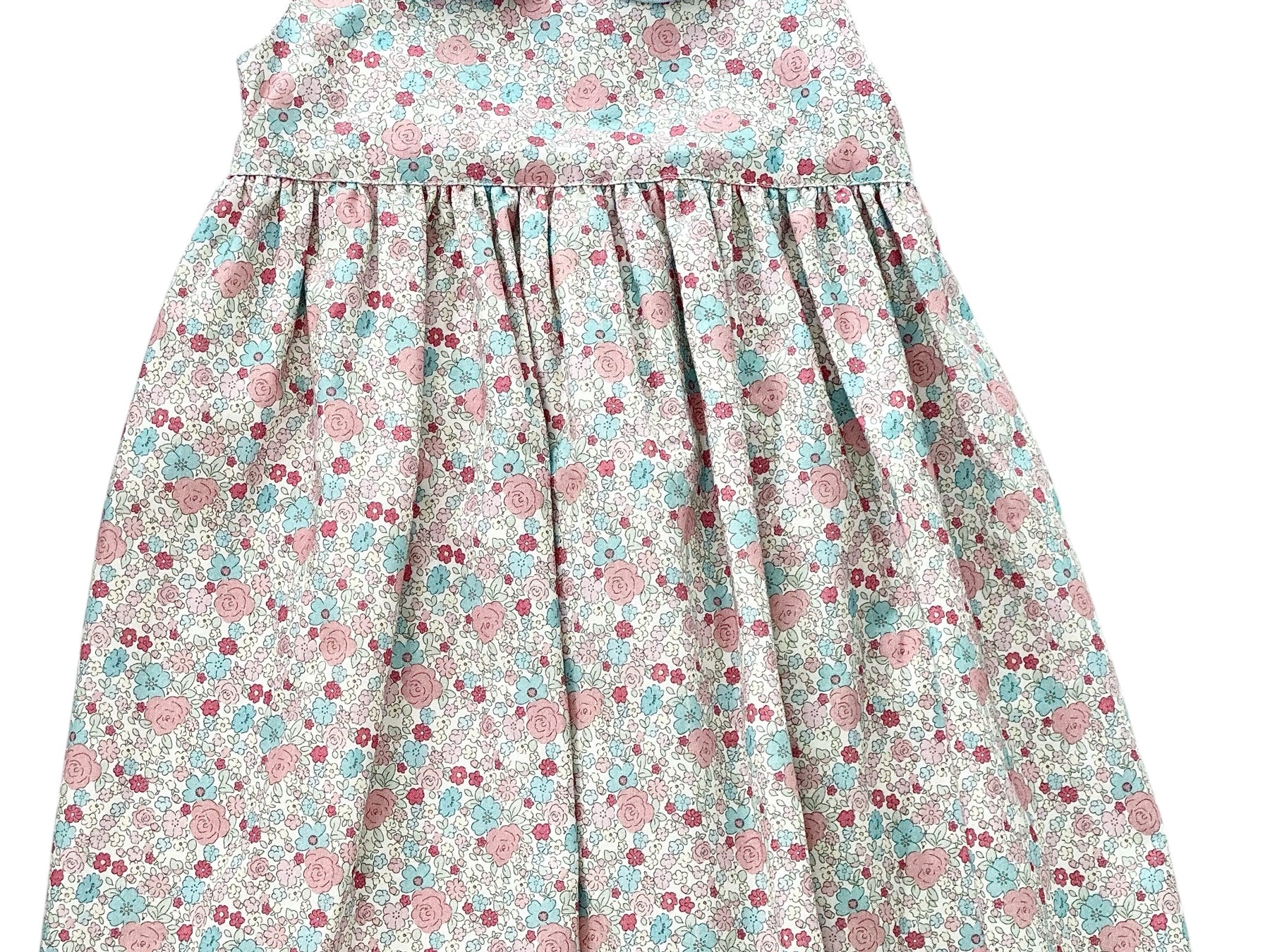 Sleeveless floral dress with scallop collar detail on front it also has a stash to tie on back.