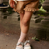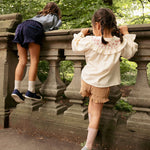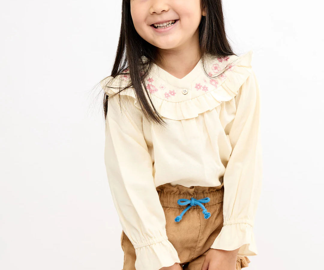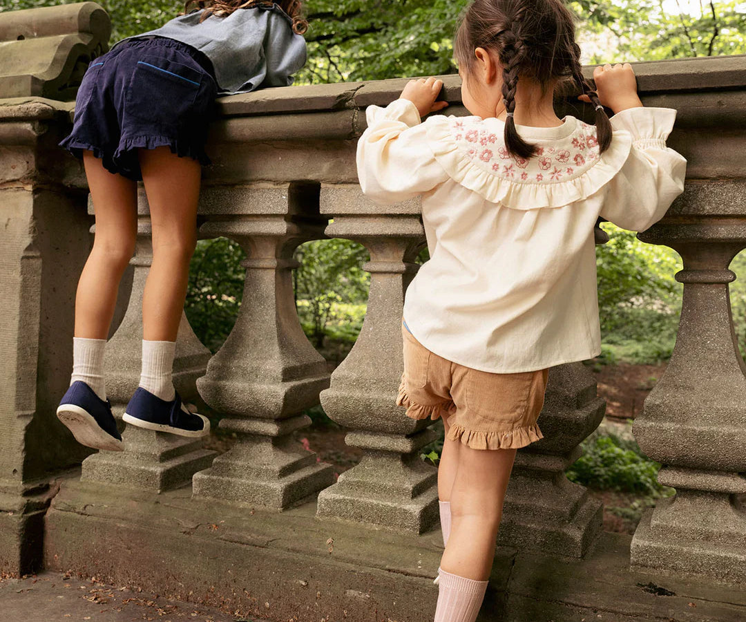 Bingo shorts a sweet spin just in time for sunny days. They're ready to move with a comfy fit and of course…ruffles. The shorter inseam makes running and jumping a breeze, and the drawcord fits growing waistlines for longer wear. The slip-on style means no zippers or buttons!