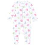 Footie with zipper and snap on top. Size 18m & 24m comes without feet cover. Comes in blue and pink